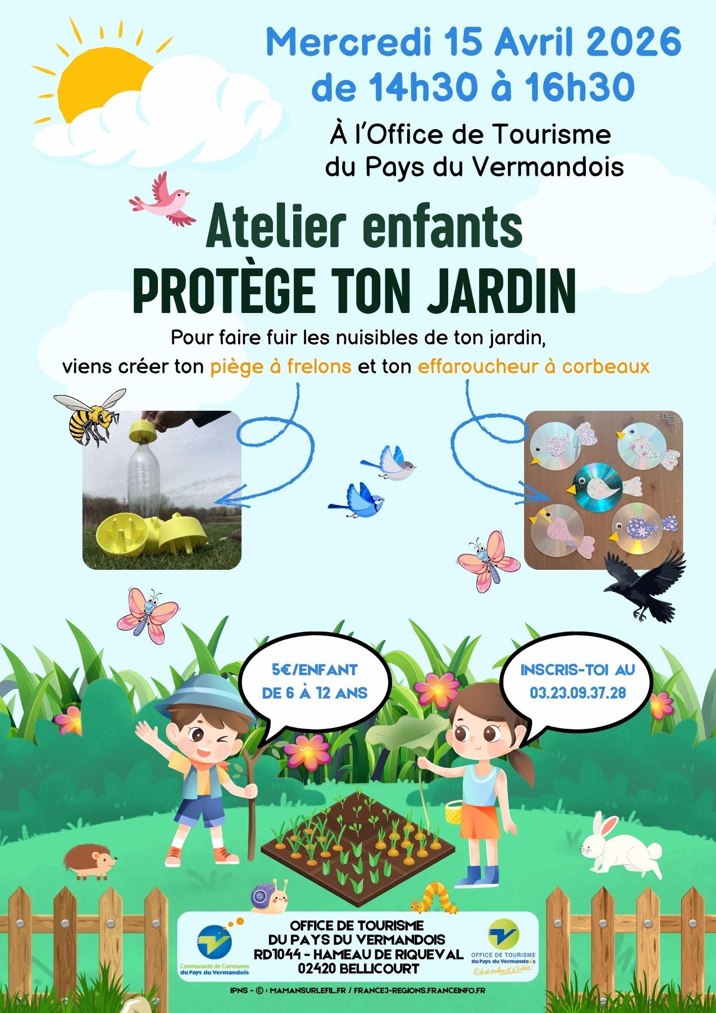 Viens participer à l'atelier créatif "Protège ton jardin" proposé aux enfants de 6 à 12 ans par l'Office de Tourisme du Pays du Vermandois.