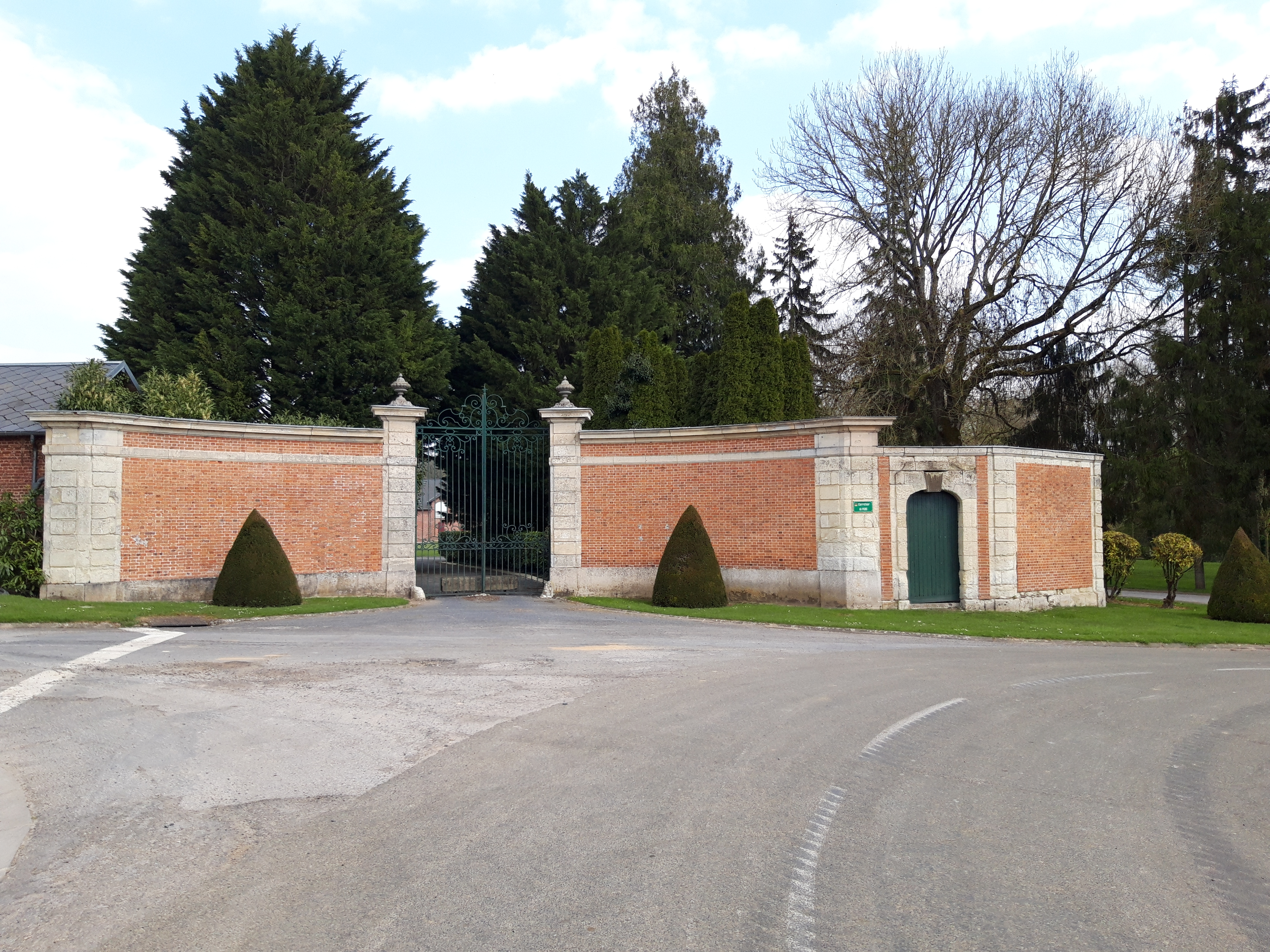 Château, parc (avec portiques et vases), mur de clôture et ancien portail du XVIIIe siècle (classé partiellement aux monuments historiques) (privé)