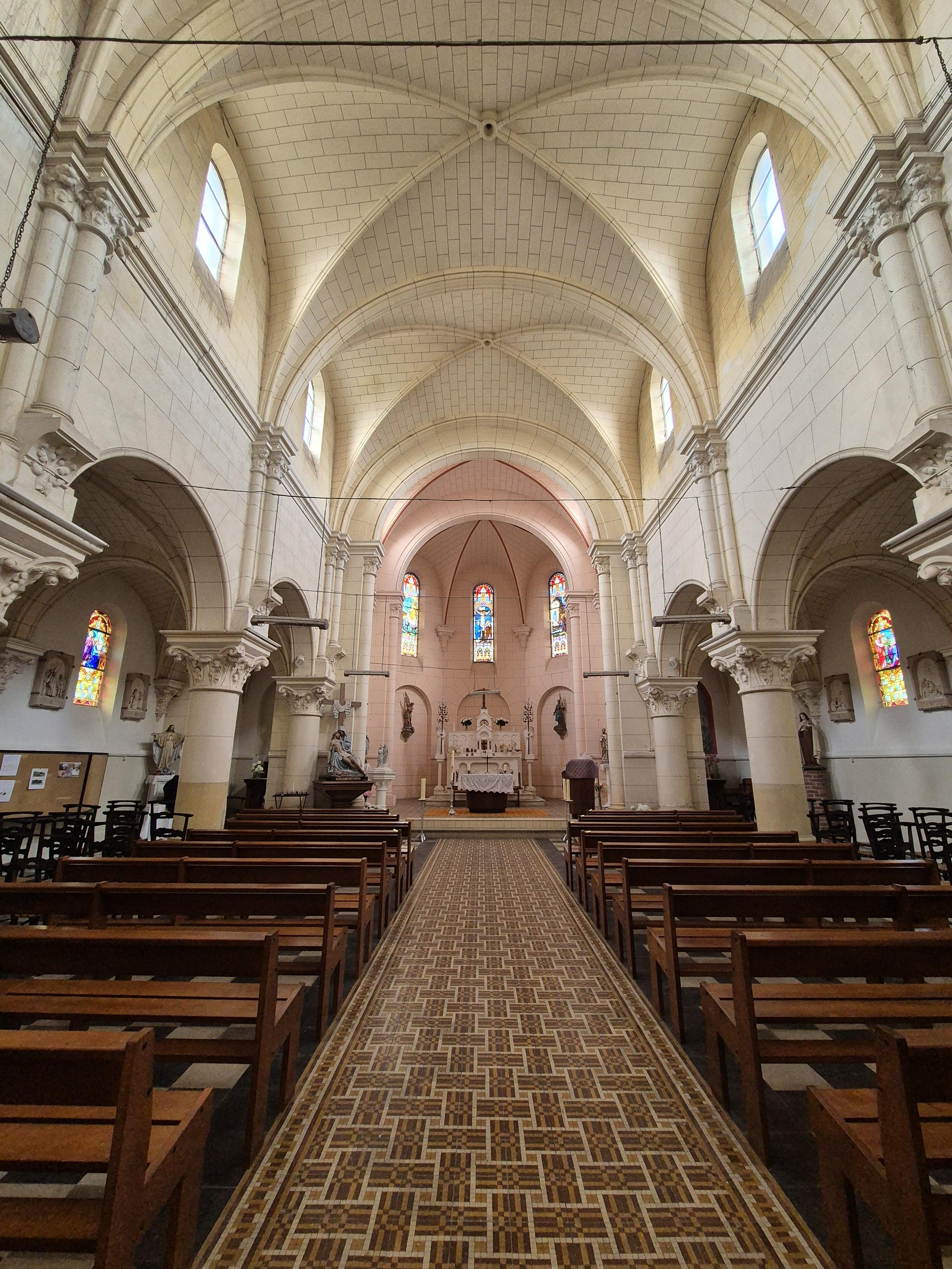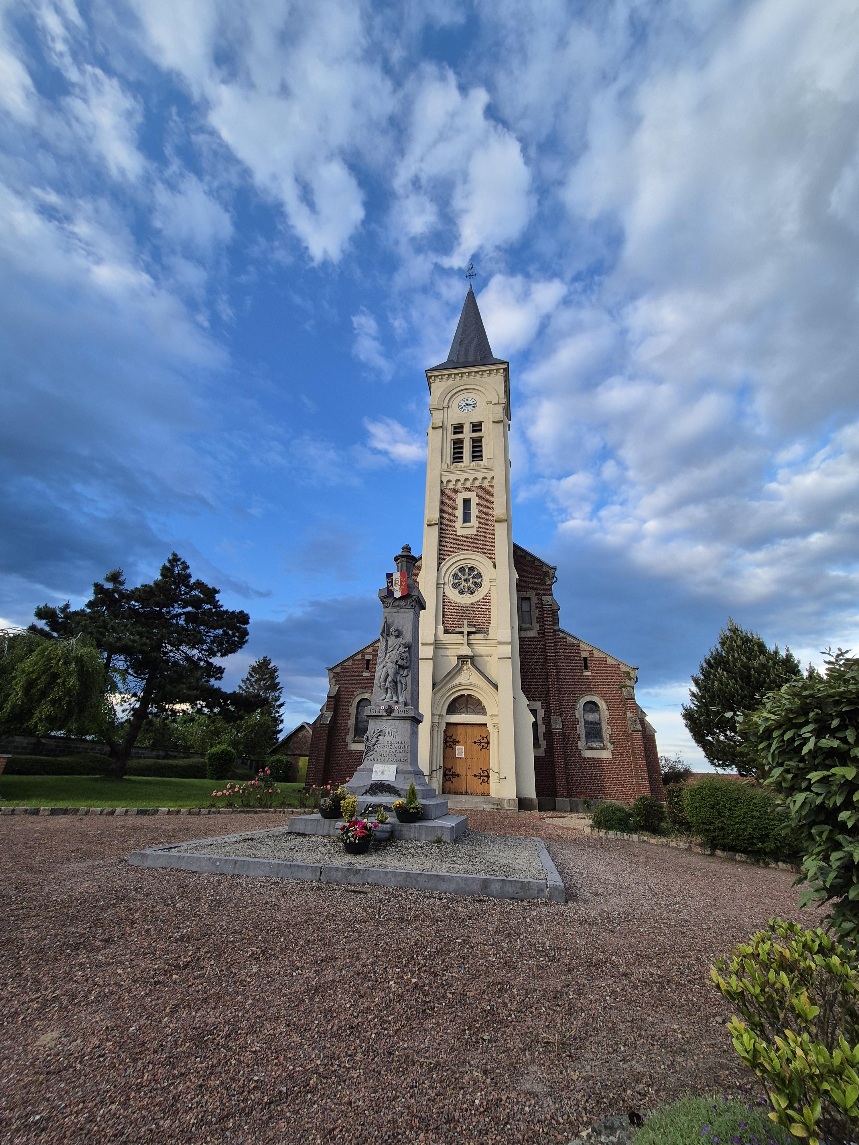 Reconstruite après la Première Guerre mondiale, cette église se trouvait précédemment en bordure de la route en retrait de laquelle elle se dresse maintenant.